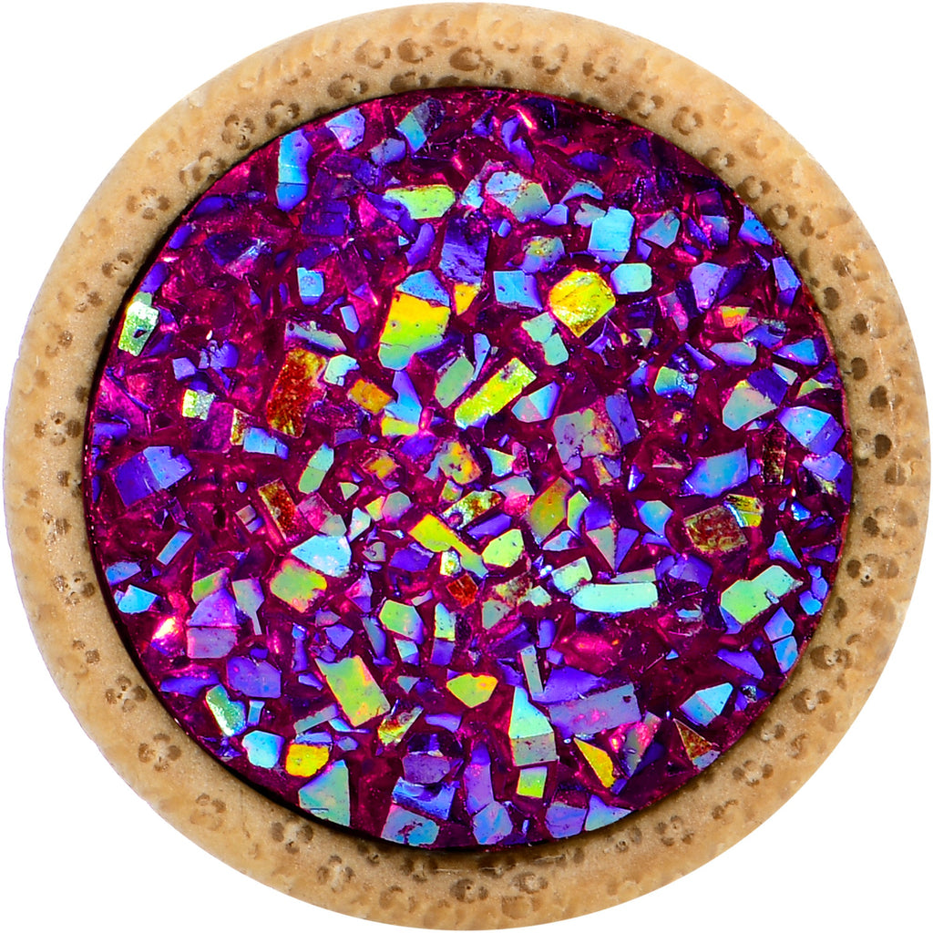 7/16 Pink Druzy Stone Wood Saddle Plug Set