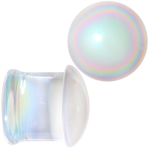 Your lobes will definitely be radiating with radical style when you wear these lustrous glass plugs. This pair of 11mm white glass plugs feature a fashionable radiant design with subtle rainbow halos on their front facing sides. Take your stretched ear style to the next level with these simple, fun double flare ear plugs. Sold as a set of two.Specifications
