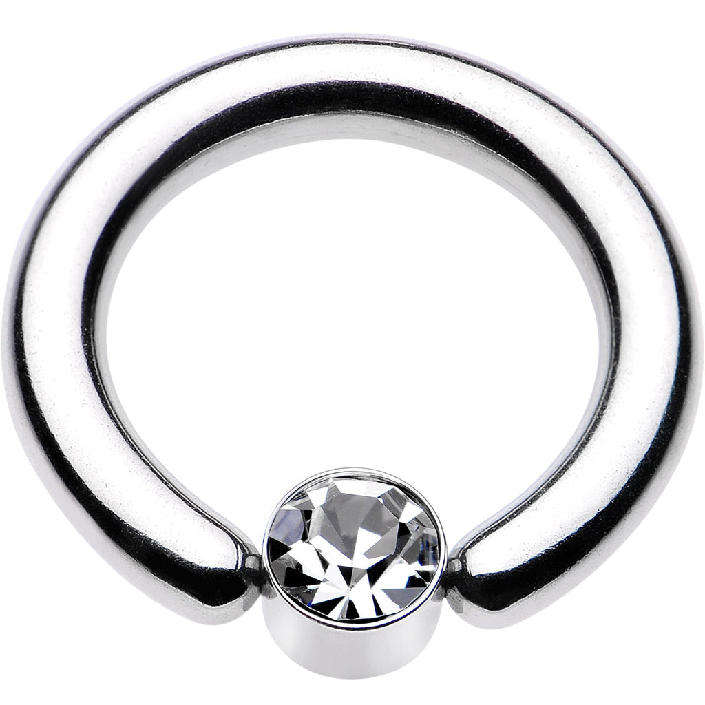 If you love basic jewelry with a touch of glam then this pretty 8 gauge captive bead ring is just right for you. Made with a 12mm circumference durable 316L surgical grade stainless steel circular ring, this BCR captive disc earring features a 5mm flat captive disc set with a clear gem inlay and is perfect for cartilage and ear piercings as well as any other piercing where it is a perfect fit for you!