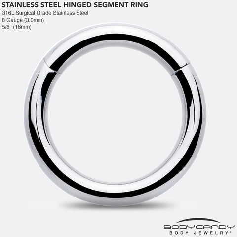 8 Gauge (3.2mm), 5/8" (16mm), Precision Hinged Closure, 316L Surgical Grade Stainless Steel