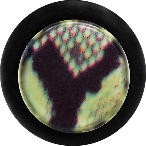 Hypoallergenic jewelry for sensitive skin.Taper plug sold individually, purchase a quantity of 2 for a pair. Acrylic body jewelry ear taper with a snake skin design. 8mm taper expander with slithering style.