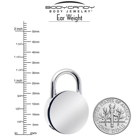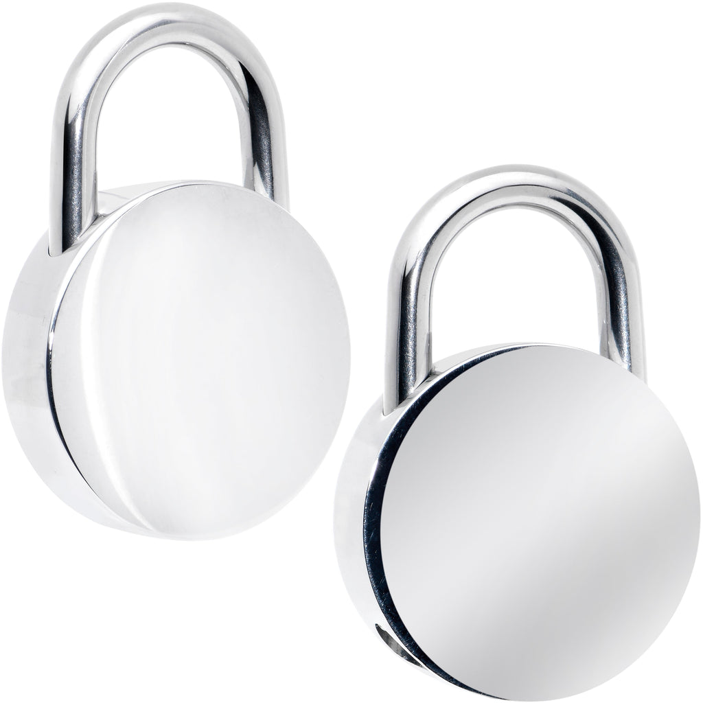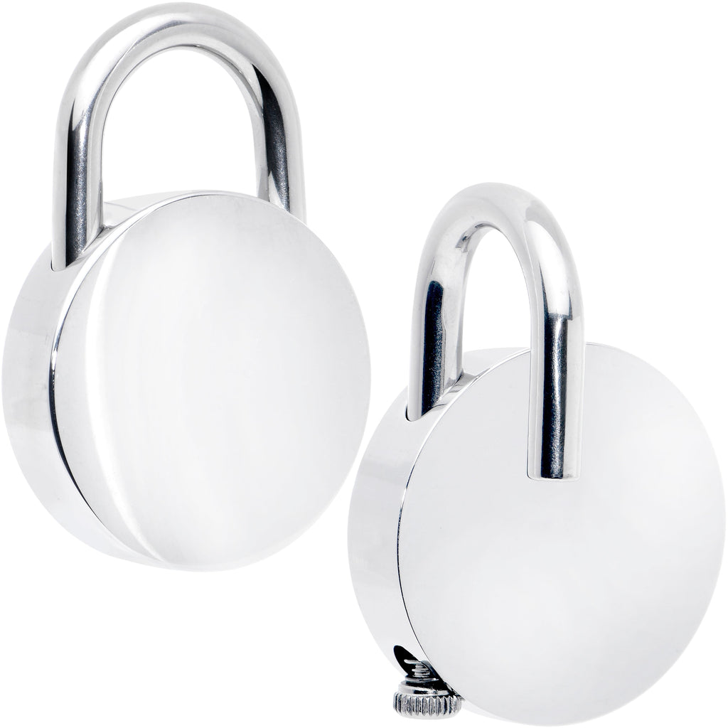 Get a lock on style with these 8 gauge ear weights. They are made with 316L surgical grade stainless steel and feature a round padlock design to keep your look safely locked up tight. Get ready to lock with this perfect padlock-style ear weights for stretched lobes. These ear weights are comfortable and perfect for sensitive skin. To lock and unlock the padlock ear weight earrings; simply use a 1.5mm Allen Wrench (not included). Sold as a set of two hanger ear weights for stretched piercings.
