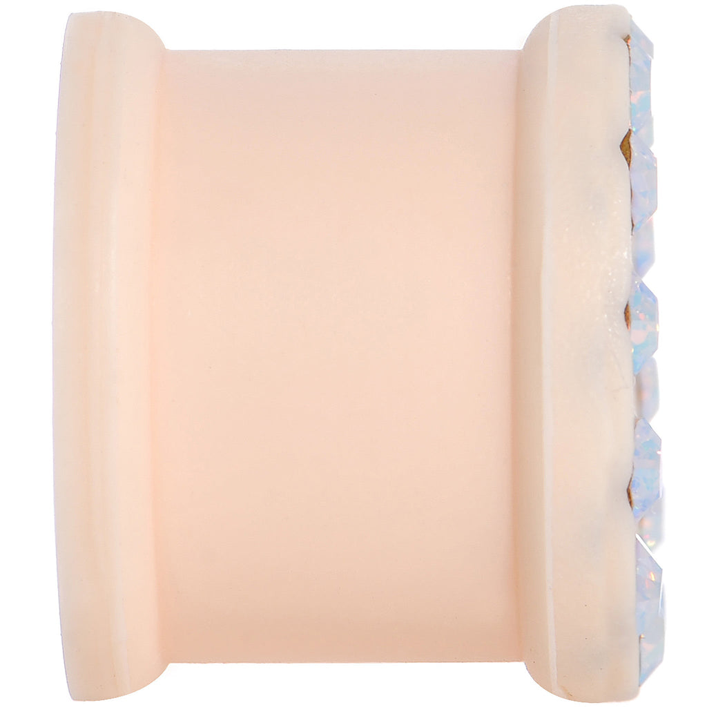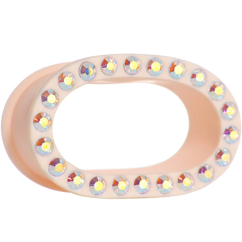 Sold individually, purchase 2 for a pair. For those who want a more glam look without sacrificing comfort, this 14mm ear expander is fashioned from flexible peach silicone and studded with sparkling aurora gems. Pierced ear stretcher Body Jewelry.Double flare ear gauge.