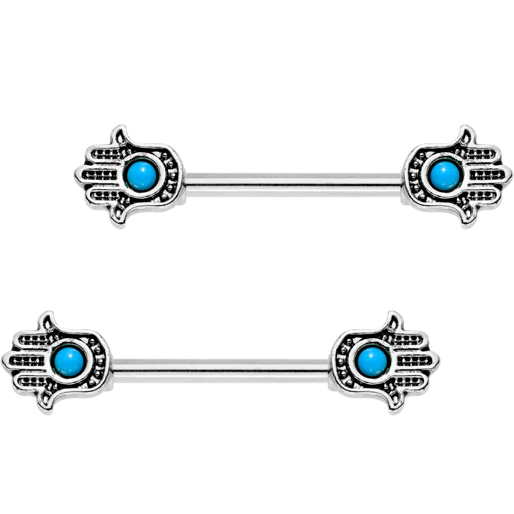9/16" Blue Orb Hamsa Hand Barbell Nipple Ring Set
