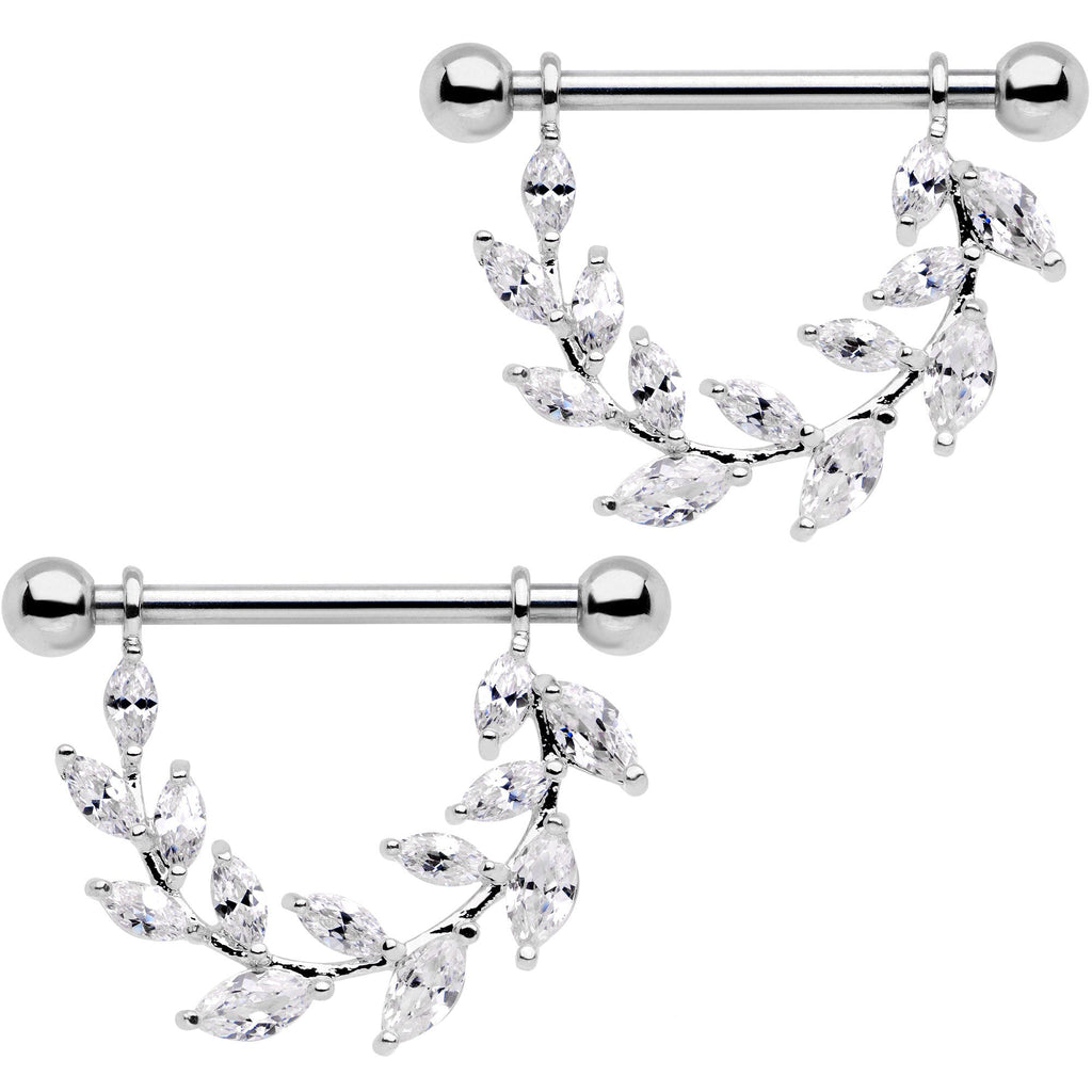 9/16" Clear CZ Gem Ivy Leaf Dangle Nipple Ring Set