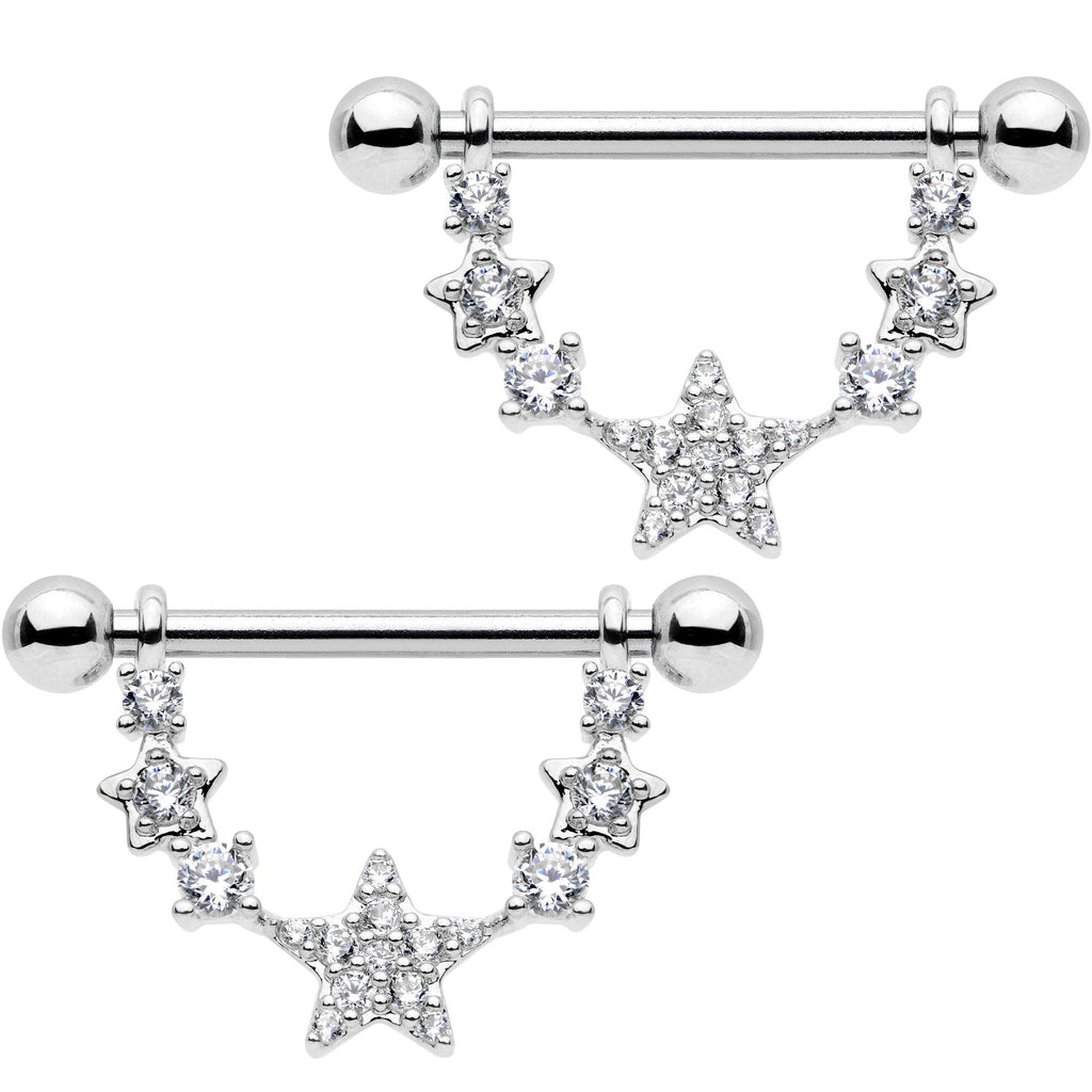 9/16" Clear CZ Gem Star Dangle Barbell Nipple Ring Set