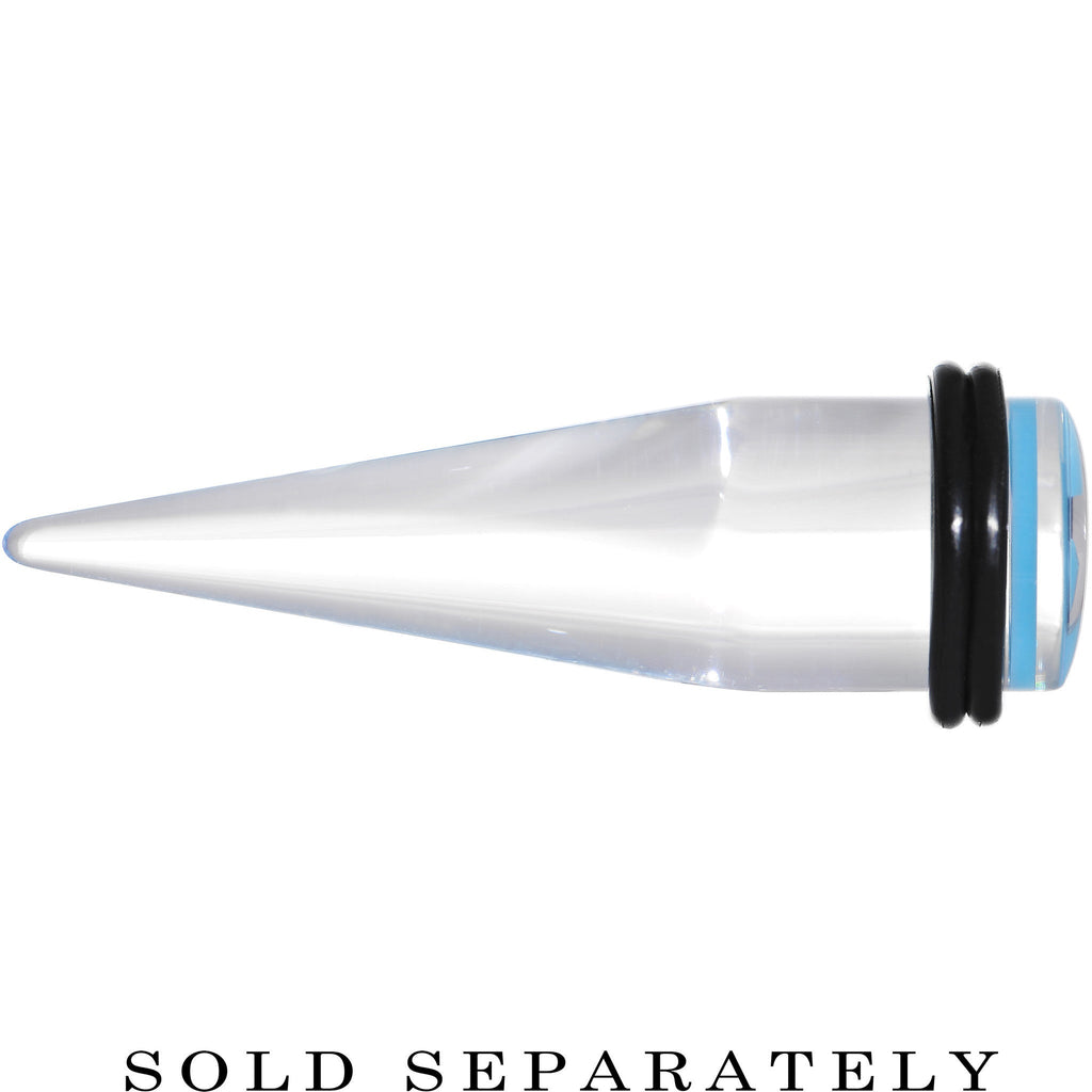 Hypoallergenic jewelry for sensitive skin.Item sold individually, purchase two for a pair. Always have a wish on hand when you wear this star acrylic ear expander taper plug. The solid clear acrylic 14mm ear stretcher is topped with light blue and a clear star at the center. Pierced body jewelry straight taper ear gauge plug comes with two rubber O-rings.