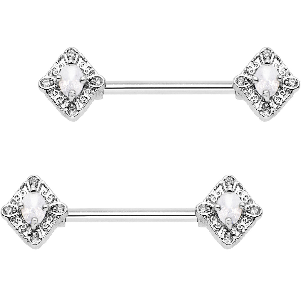 9/16" Clear White Gem Rococo Rhombus Barbell Nipple Ring Set