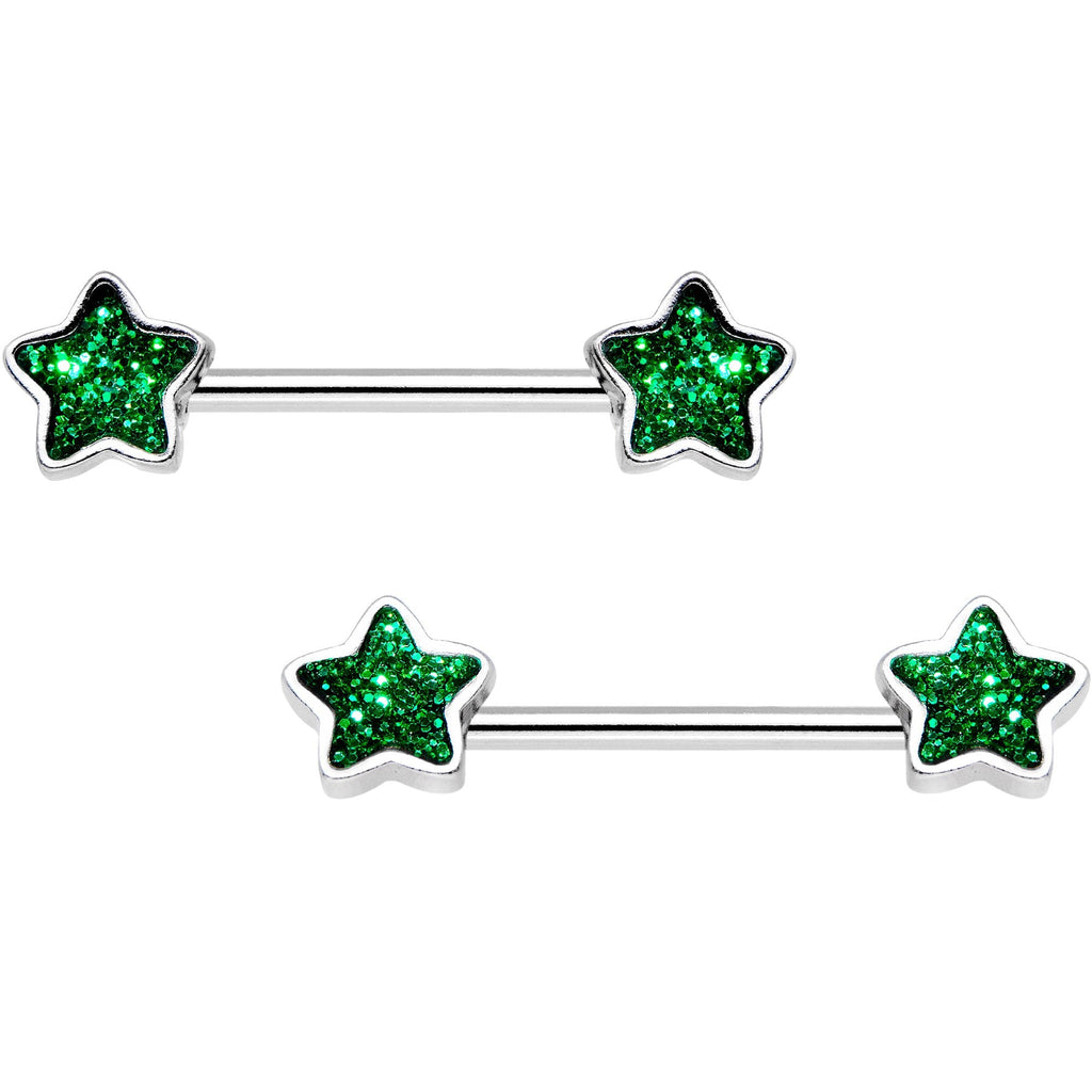 9/16" Green Gem Glitter Galaxy Star Barbell Nipple Ring Set