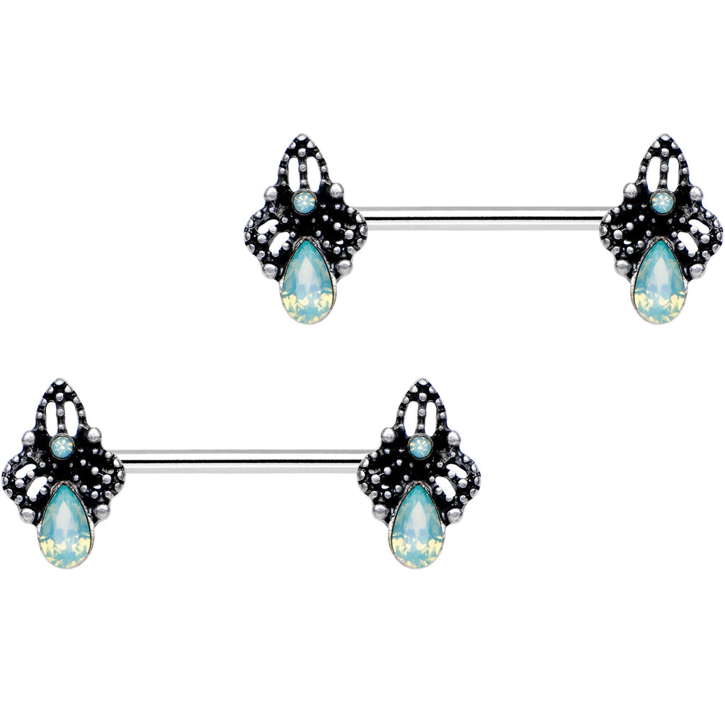 9/16" Green Gem Victorian Raindrop Barbell Nipple Ring Set