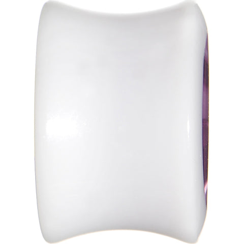 Sold Individually, purchase 2 for a pair. 9/16" white acrylic plug featuring a floating purple metallic rose. Let your beauty bloom with this elegant floral ear plug.