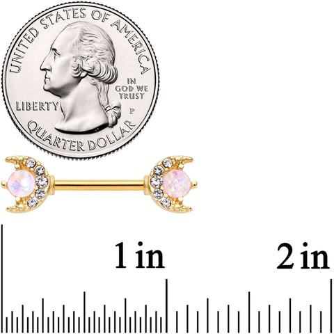 9/16" White Faux Opal Crescent Moon Gold Tone Barbell Nipple Ring Set
