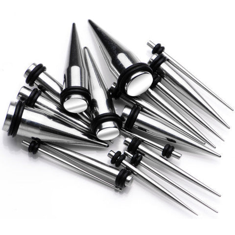 Hypoallergenic jewelry for sensitive skinSold as a set for each ear. These ear gauge expander sets include one of each size taper for each ear to gradually stretch your ear plug piercing from 14 gauge to 00 gauge. Steel taper plug ear expander sets starting with 1.6mm to 10mm sizes.