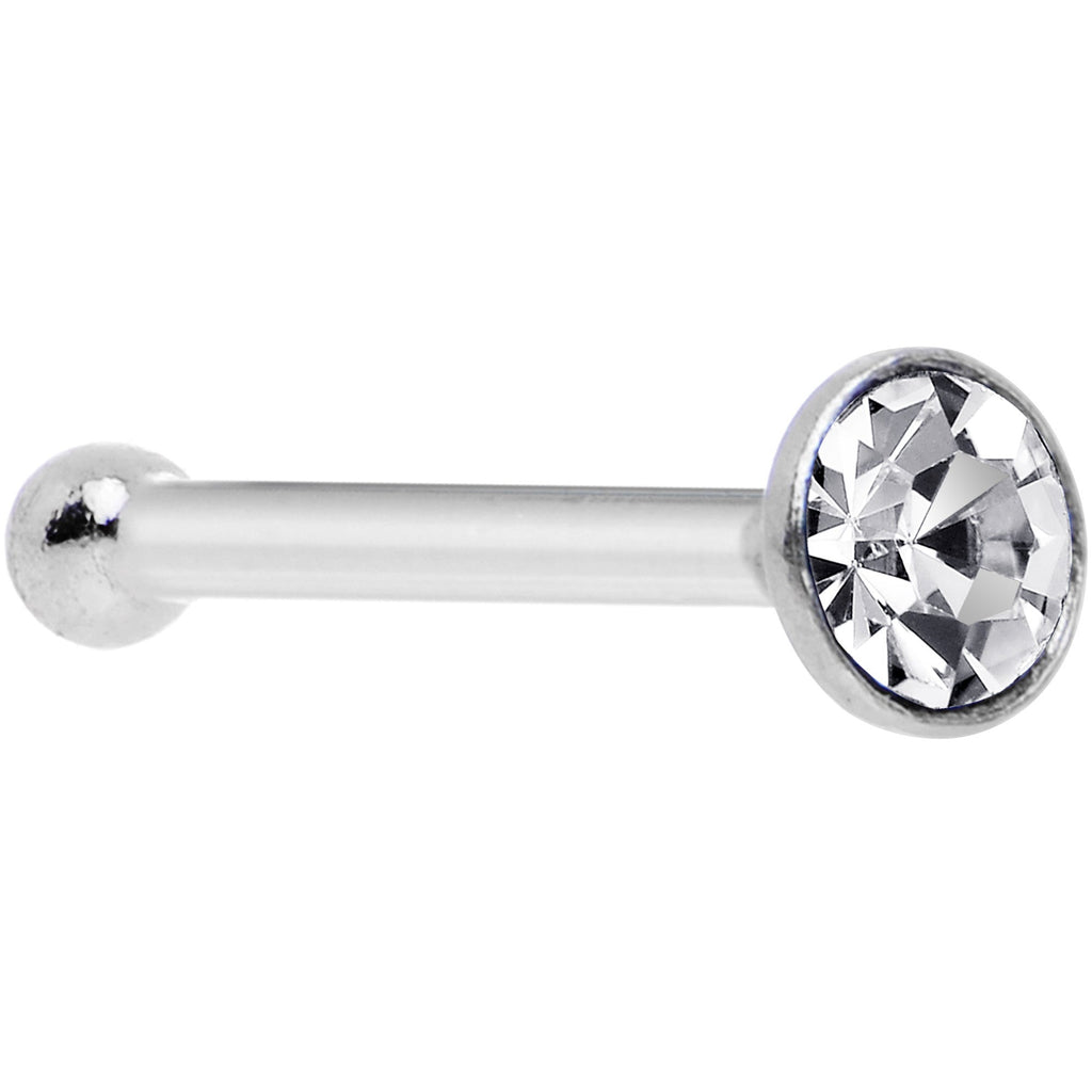 925 Silver 2mm Round Clear Nose Bone Created with Crystals