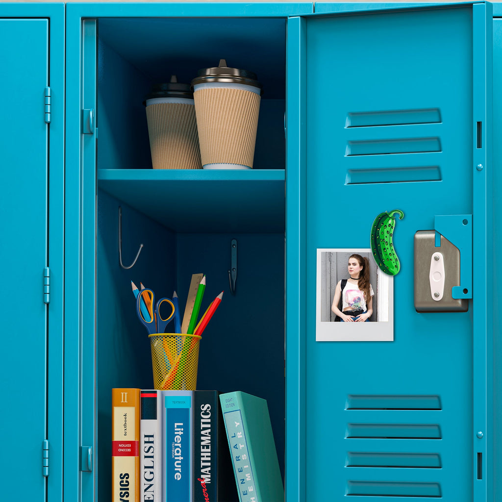 Turn your fridge, locker, or workspace into a quirky conversation starter with this pickle-shaped magnet! Designed by a talented artist, this green pickle is dripping in personality and crunch-worthy charm.