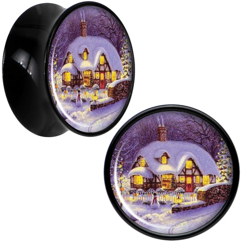 Hypoallergenic jewelry for sensitive skin.Advent Christmas Village Black Acrylic Saddle Plug Set Sizes 8mm to 20mm