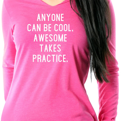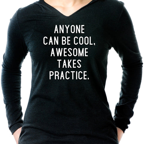 Anyone can be cool, but awesome takes practice Tapered Long Sleeve Hoodie