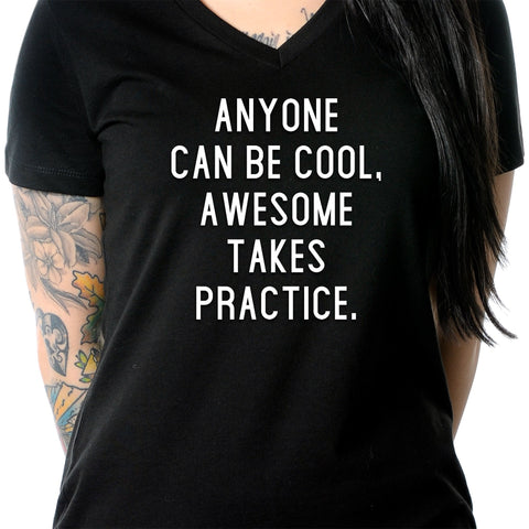 Anyone can be cool, but awesome takes practice Tapered V-Neck Tee Shirt