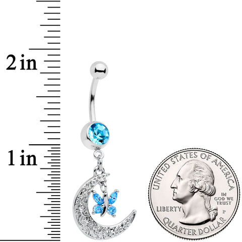 Aqua Gem Crescent Moon Butterfly Dangle Belly Ring