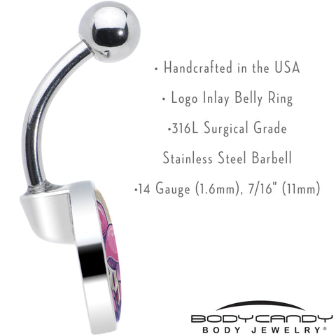 Hypoallergenic belly ring for sensitive skinArtist Drawn Pink Mushrooms Belly Ring