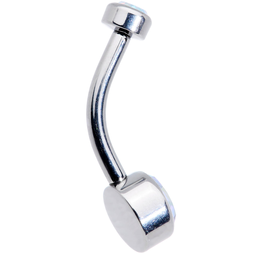 Keeping it simple doesn't mean keeping it boring or sacrificing quality with this 14 gauge navel ring! It's made with a 3/8" solid grade 23 implant grade titanium curved barbell. The 4mm top end and 6mm bottom end feature aurora crystals created with Crystals. It's also internally threaded for super comfortable insertion and removal. If you want to add some color and glamour to your belly piercing but keep an elegant appearance, this belly button jewelry has everything you need in one beautiful, comfortable package!