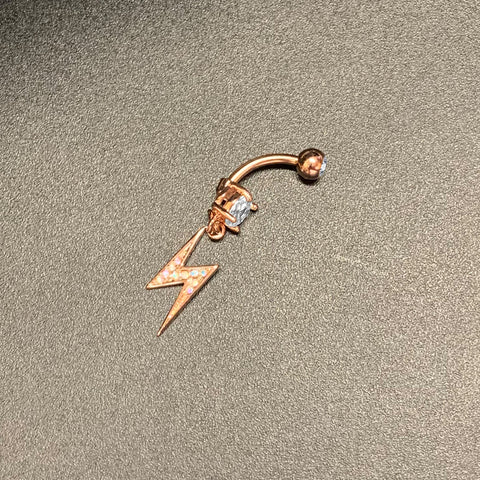 Aurora CZ Gem Rose Gold Tone Lightning Strike Dangle Belly Ring