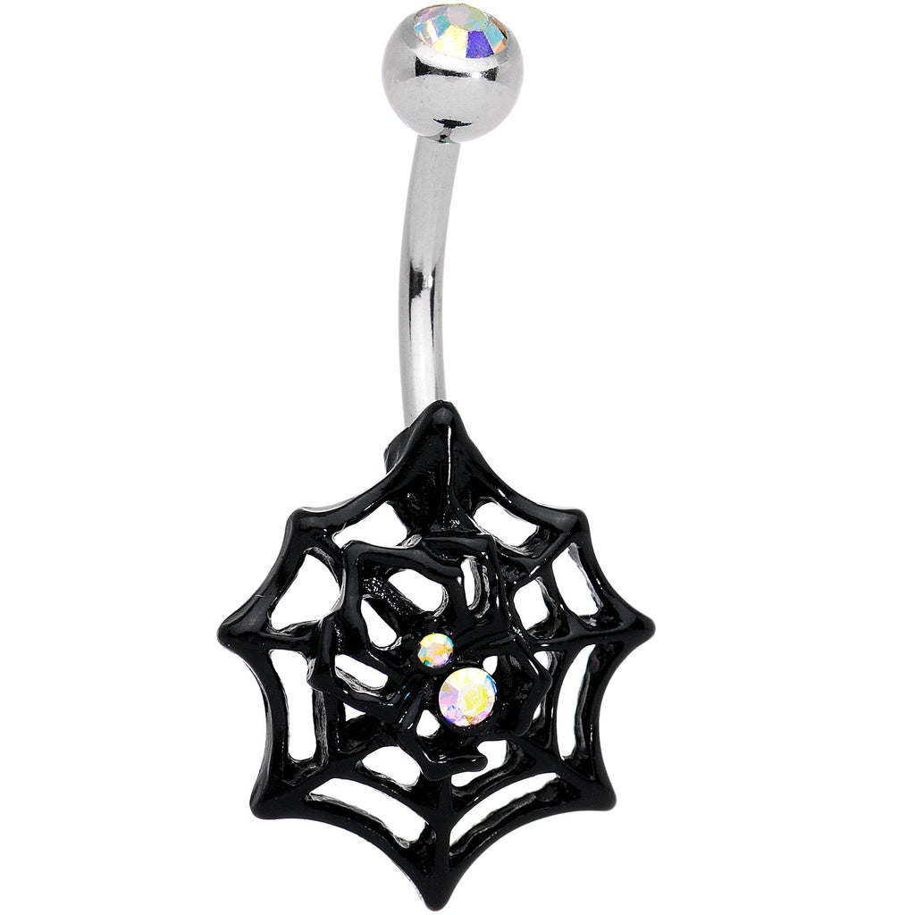 Aurora Gem Black Spider in Web Halloween Belly Ring