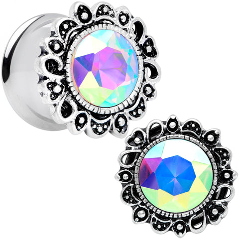 Aurora Gem Filigree Flower Double Flare Plug Set 2 Gauge to 1 Inch