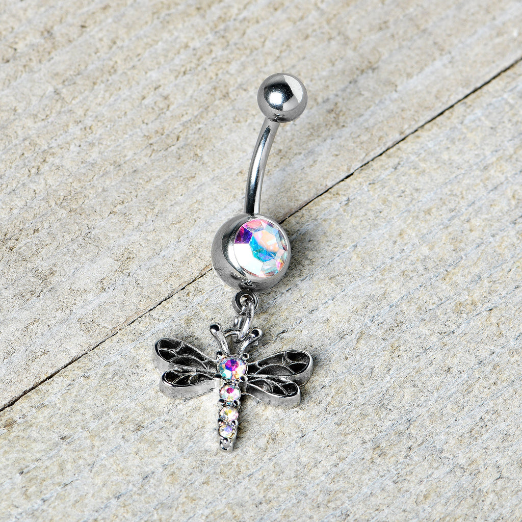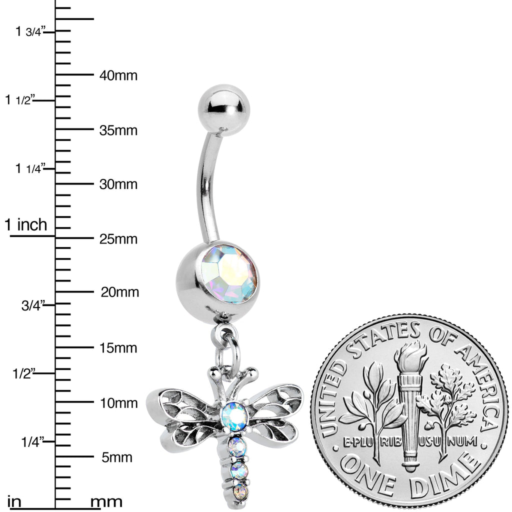 Aurora Gem Ornate Dragonfly Dangle Belly Ring
