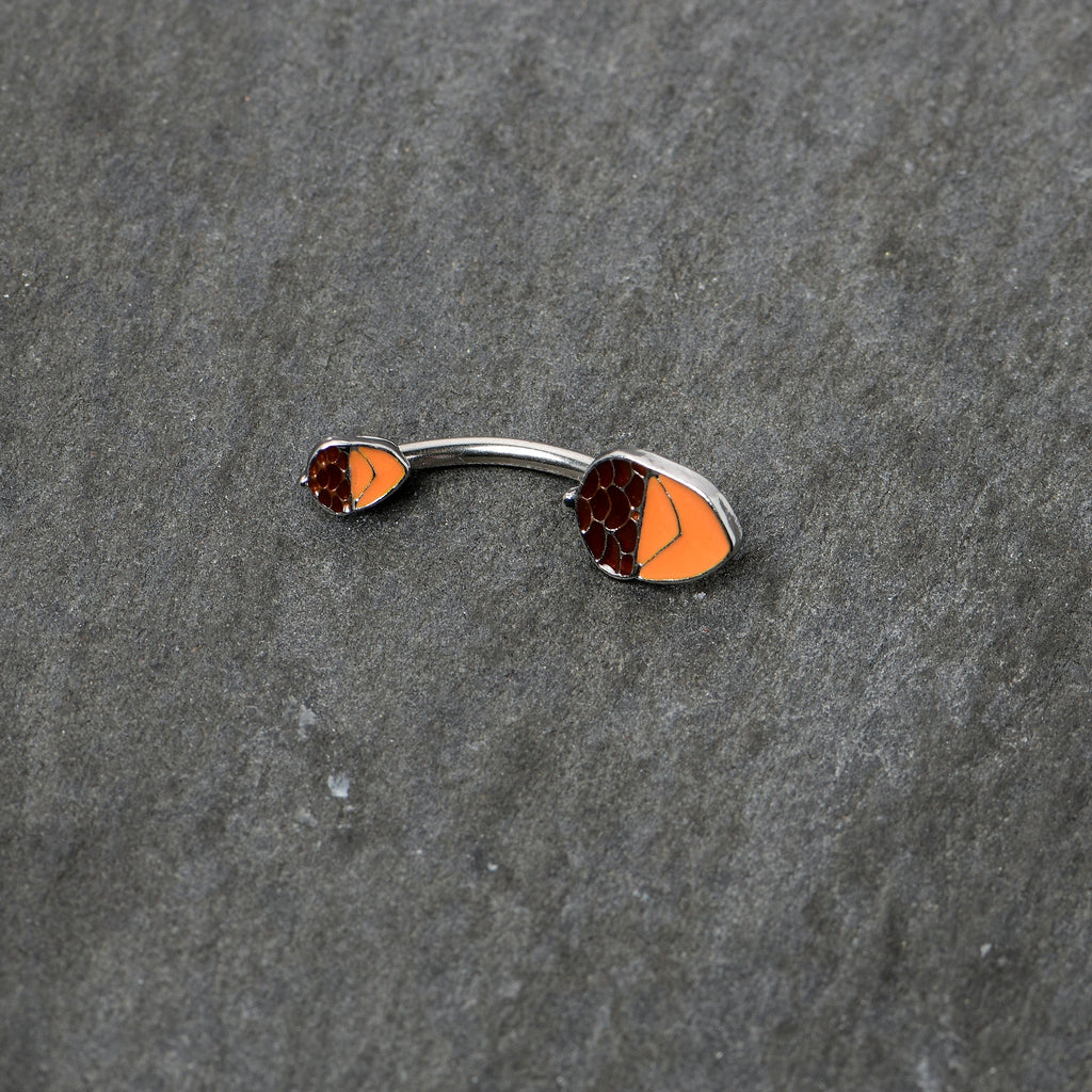 Great things grow from little seeds so show the world you're just getting started with this 14 gauge navel ring! It's made with a 3/8" durable 316L surgical grade stainless steel curved barbell. Each of the ends features an acorn charm with a brown, detailed top and an orange body. Get your grow on with this wonderful woodland-themed belly piercing jewelry!Specifications