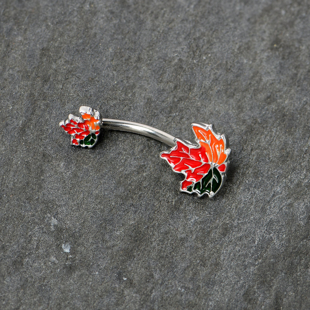 Autumn Tricolor Maple Leaves Red Green Orange Double Mount Belly Ring
