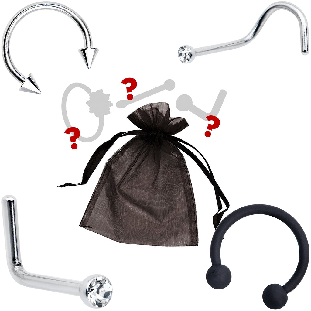 Mystery Nose Ring Bag: A random mix of 3 different nose stud rings in different styles; 18 gauge and 20 gauge