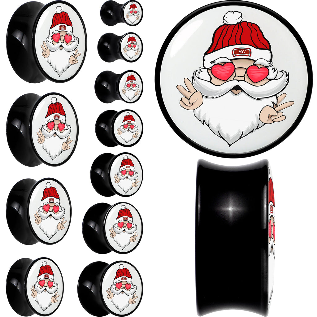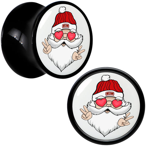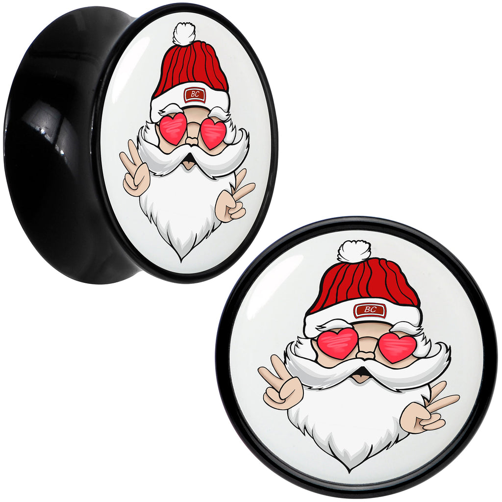 Black Acrylic Christmas Peace Love Santa Double Flare Plug Set
