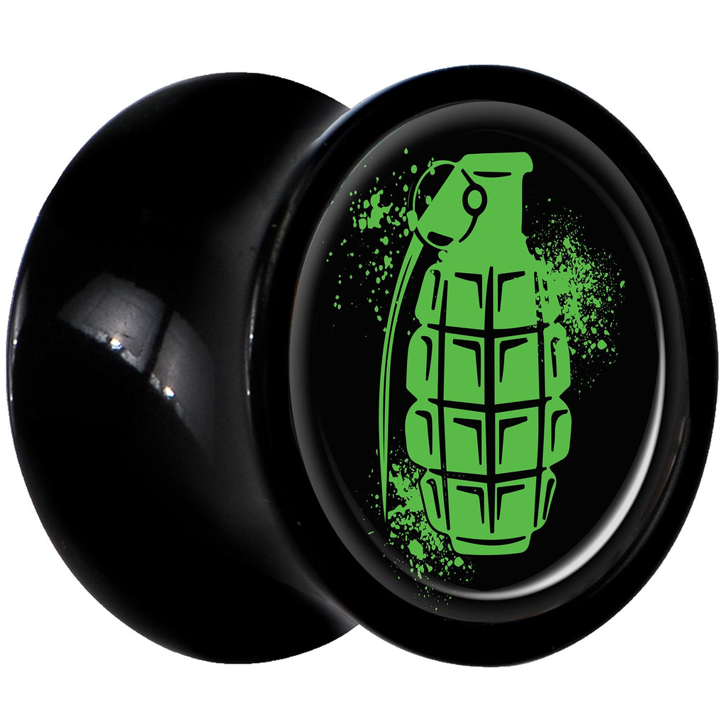 Hypoallergenic jewelry for sensitive skin.Black Acrylic Green Grenade Saddle Plug Set 0 Gauge