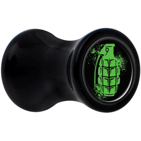 Hypoallergenic jewelry for sensitive skin.Black Acrylic Green Grenade Saddle Plug Set 4 Gauge
