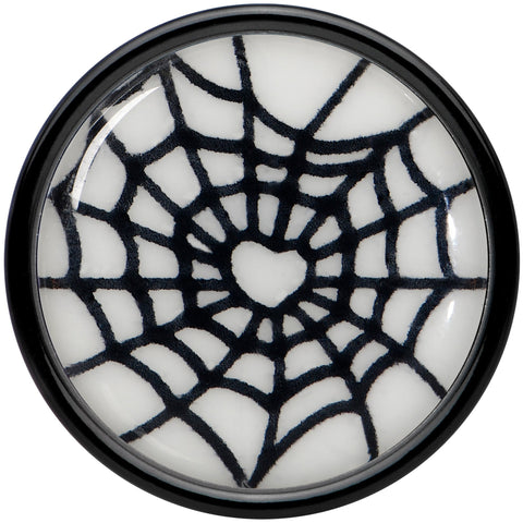 Black Acrylic Heart Spider Web Glow in the Dark Double Flare Plug Set