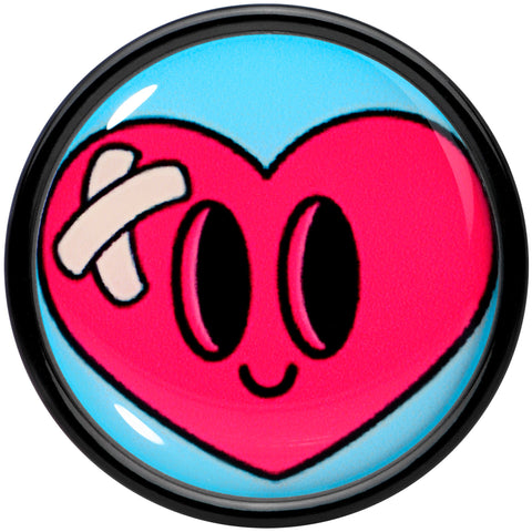 If your heart has been hurt, you are sure to fall in love with these plugs for stretched lobes. They are made with black acrylic with a double flare design for secure wear. The front features a blue charm that features an anthropomorphic heart. The heart has a pair of crossed bandages on it and a bravely smiling expression. Let love heal your wounds with these adorably courageous heart double flare plugs. Sold as a set of two.