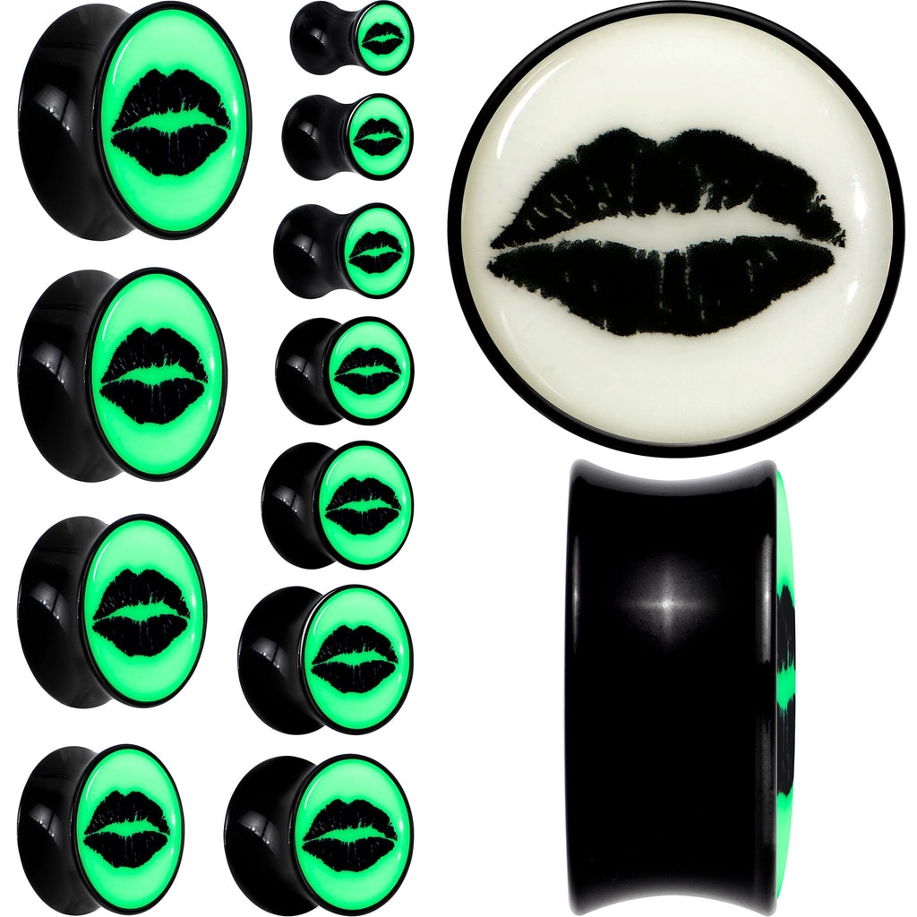 Hypoallergenic jewelry for sensitive skin.Black Acrylic Lipstick Kiss Glow in Dark Double Flare Plug Set