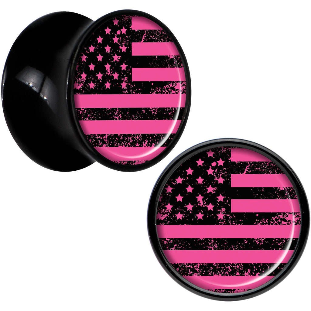 Black Acrylic Pink American Flag Saddle Plug Set 1/2"