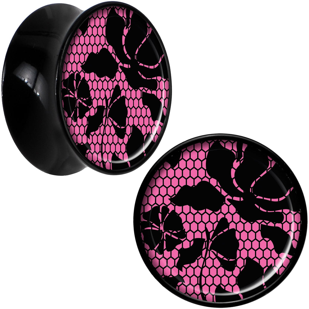 Black Acrylic Pink Floral Lace Saddle Plug Set 20mm