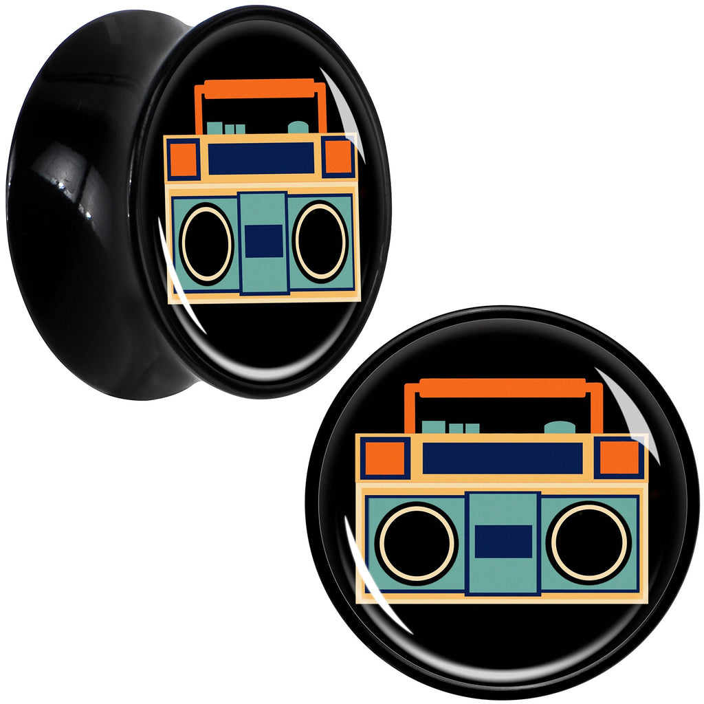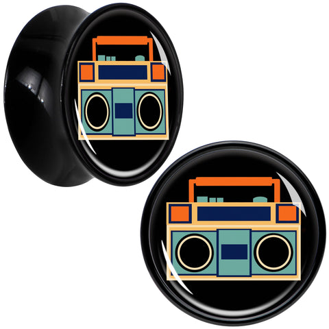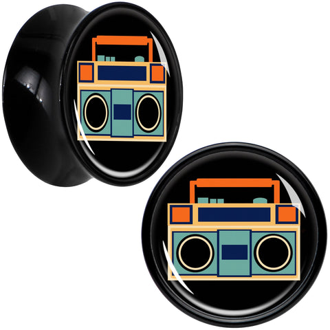 Black Acrylic Retro Boombox Double Flare Plug Set by Onyx O
