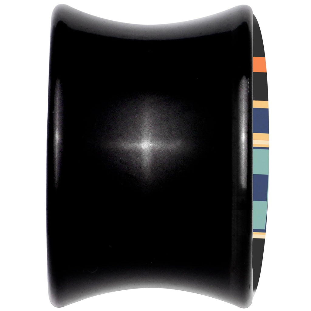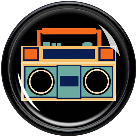 Pump up the jams with these plugs for stretched lobes. They are made with black acrylic with a double flare design for secure wear. The front features an 80s style boombox design. The boom box is blue with orange detailing for visual contrast you can not help but notice. Rock out your stretched lobe piercings old-school with this refreshingly retro plug set. Sold as a set of two.