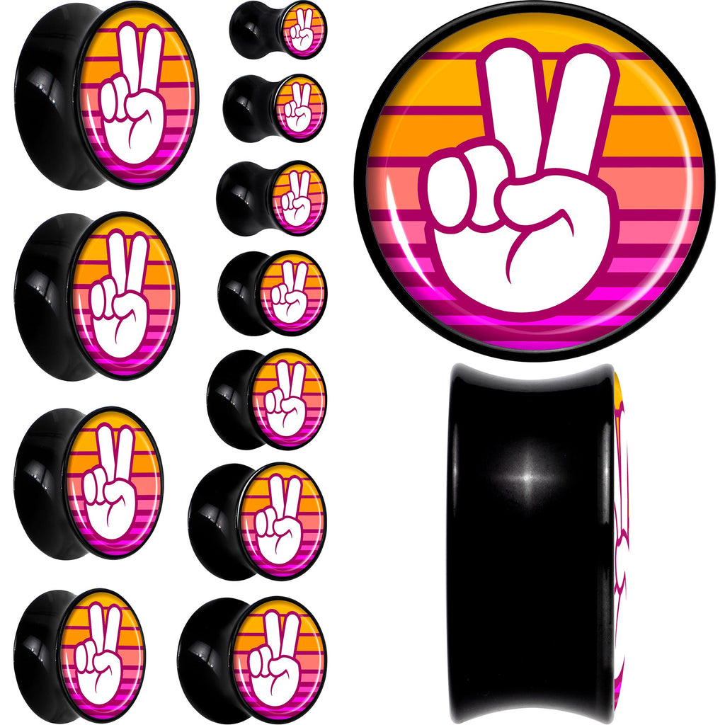 Black Acrylic Retro Peace Fingers Double Flare Plug Set