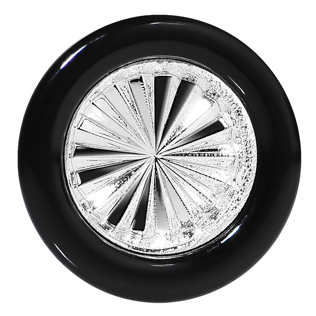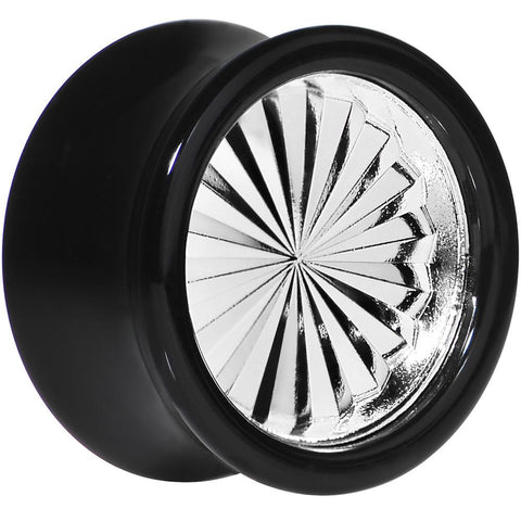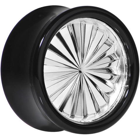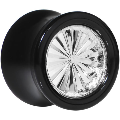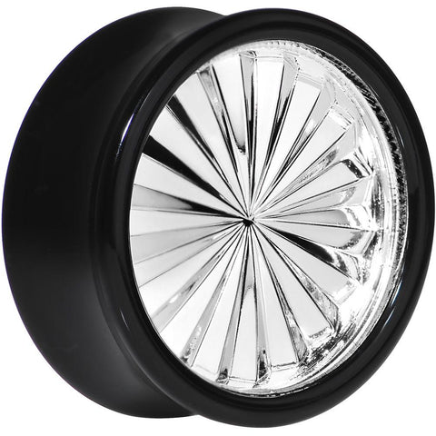 Hypoallergenic jewelry for sensitive skin.Item sold individually, purchase two for a pair. Show off your love of glitz with this ear expander plug and its shiny inlay. A black acrylic double flare saddle plug gleams like a silver fancy tire rim. Pierced body jewelry ear gauge plug.