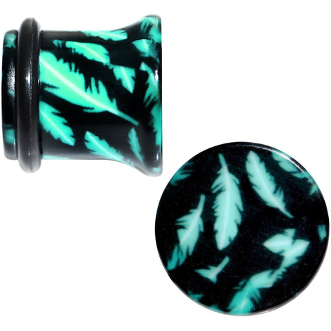 Hypoallergenic jewelry for sensitive skin.Feel light as a feather with this set of single flare plugs featuring a teal feather pattern against the black acrylic base. This pair of plugs includes 2 black rubber o-rings to secure the jewelry in your stretched ears. Available in sizes 3mm to 16mm