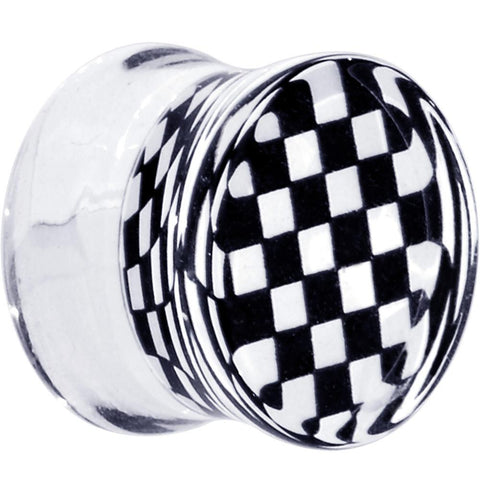 Acrylic saddle plug. Show off with this cool checkered plug designed in acrylic with a logo inlay. Double flare plug; Item is sold individually.