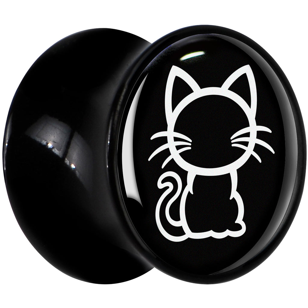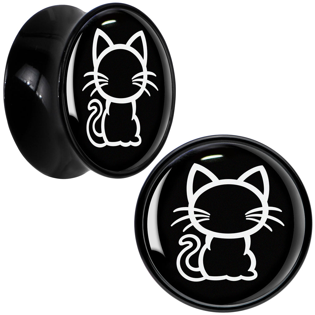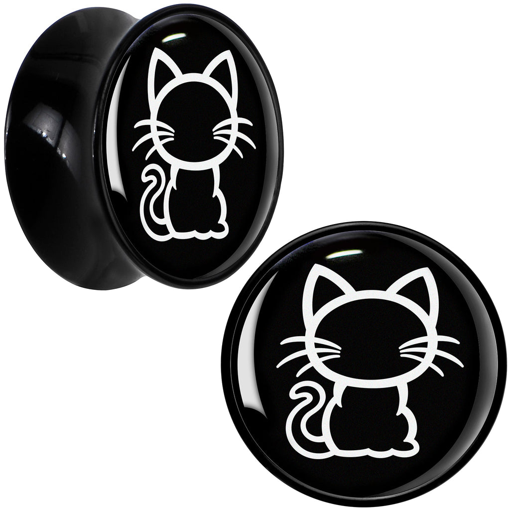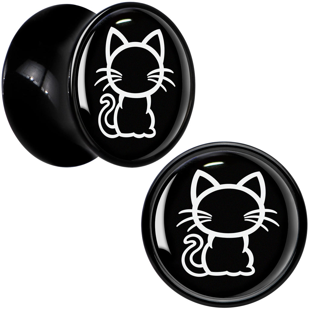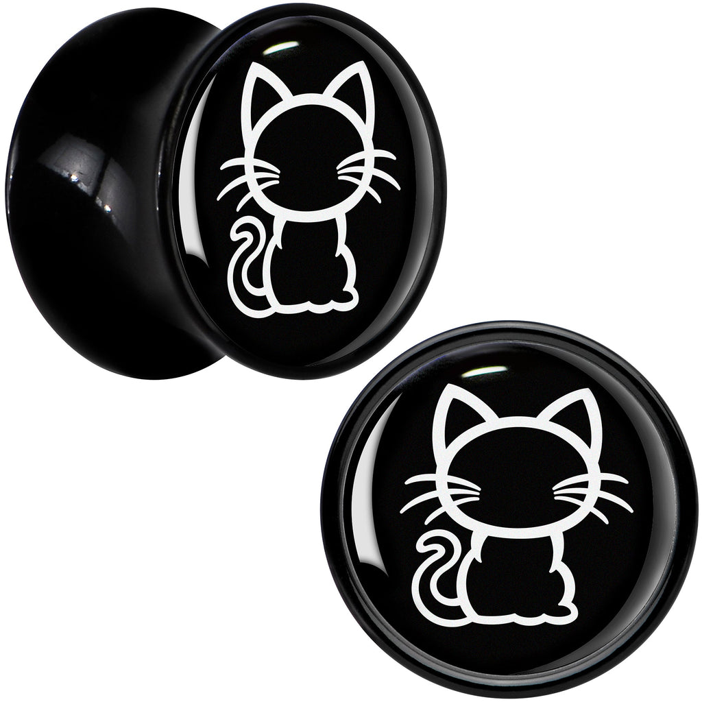 Black and White Kitty Cat Black Acrylic Saddle Plug Set 8mm to 20mm