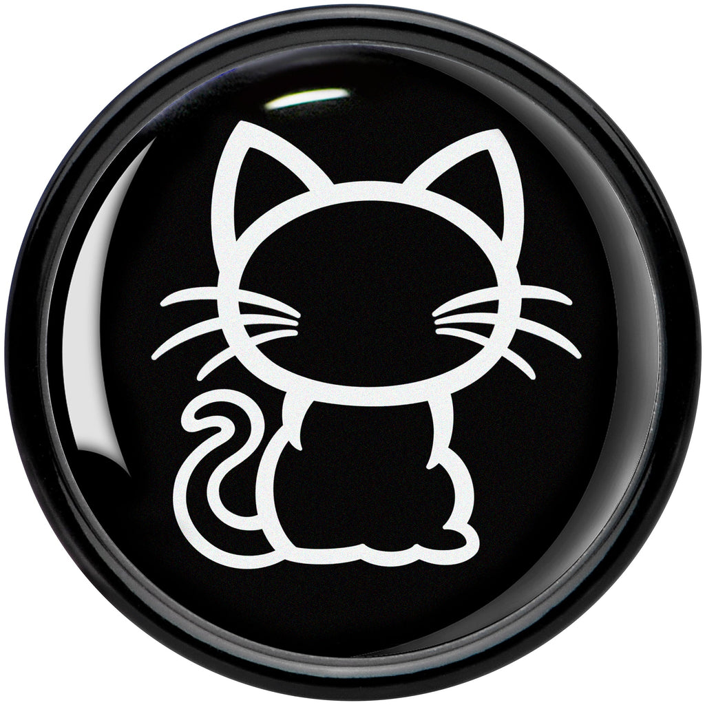 Keep it simple while keeping it as adorable as the kitty cat on these plug earrings for stretched lobes. They're made with black acrylic with a saddle design for comfortable insertion and removal. Each one features a cat charm. The cats are styled with the simplest of detailing in white against a black background for visual impact. You'll be ready to purr like a pussycat with these fabulous feline ear gauges. Sold as a set of two. Available in Sizes 8mm to 20mm.