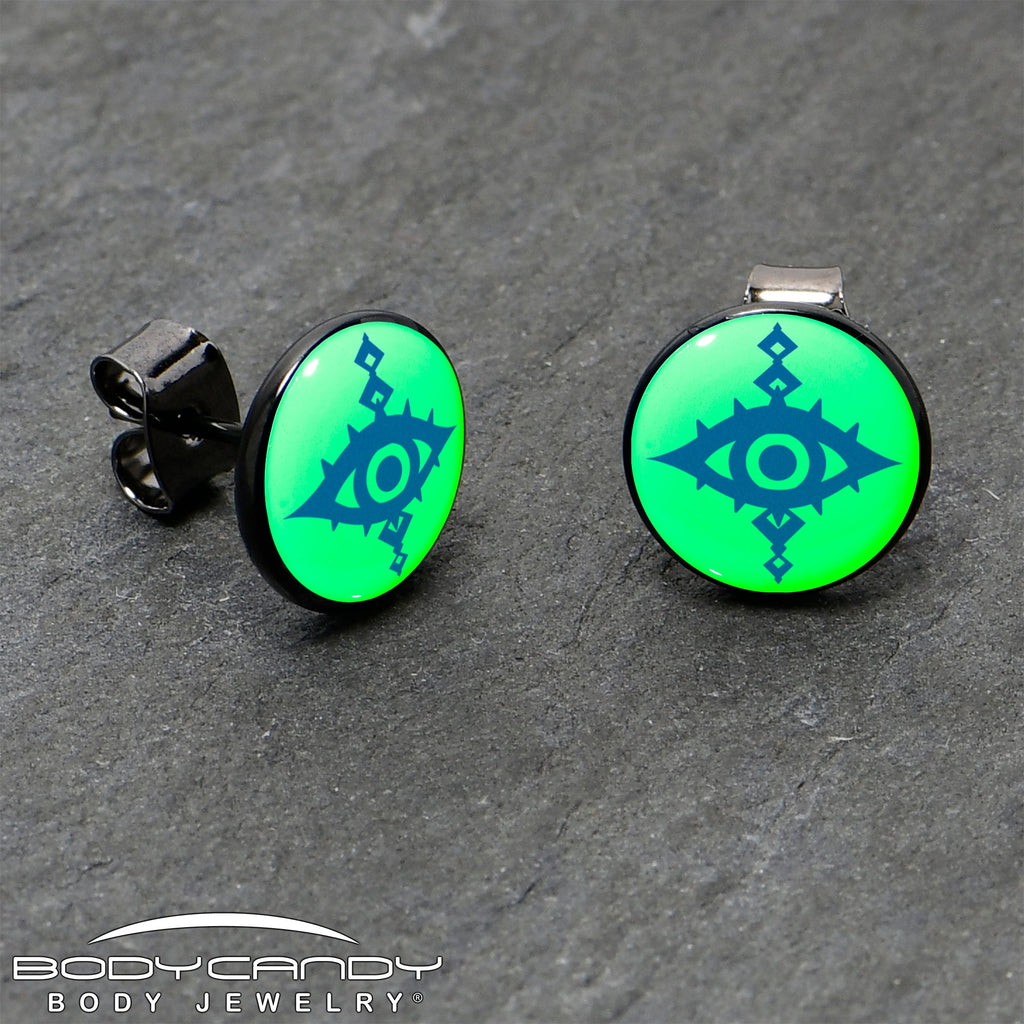 Black Anodized Evil Eye Glow in the Dark Stud Earrings