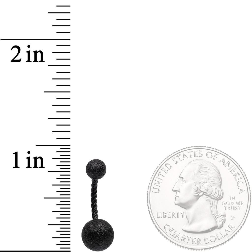 This 14 gauge belly ring just goes to show that you can keep it simple while still keeping it stylish! Made with a 7/16" black anodized over durable 316L surgical grade stainless steel twisted curved barbell, they feature 5mm top ball ends and 8mm ball ends with a lightly shimmery finish. This piece takes its visual impact from both the intense color and the twisted barbell for a look with plenty of punch within a sleek appearance. Pop this in your piercing and get twisted - while keeping it totally tasteful.